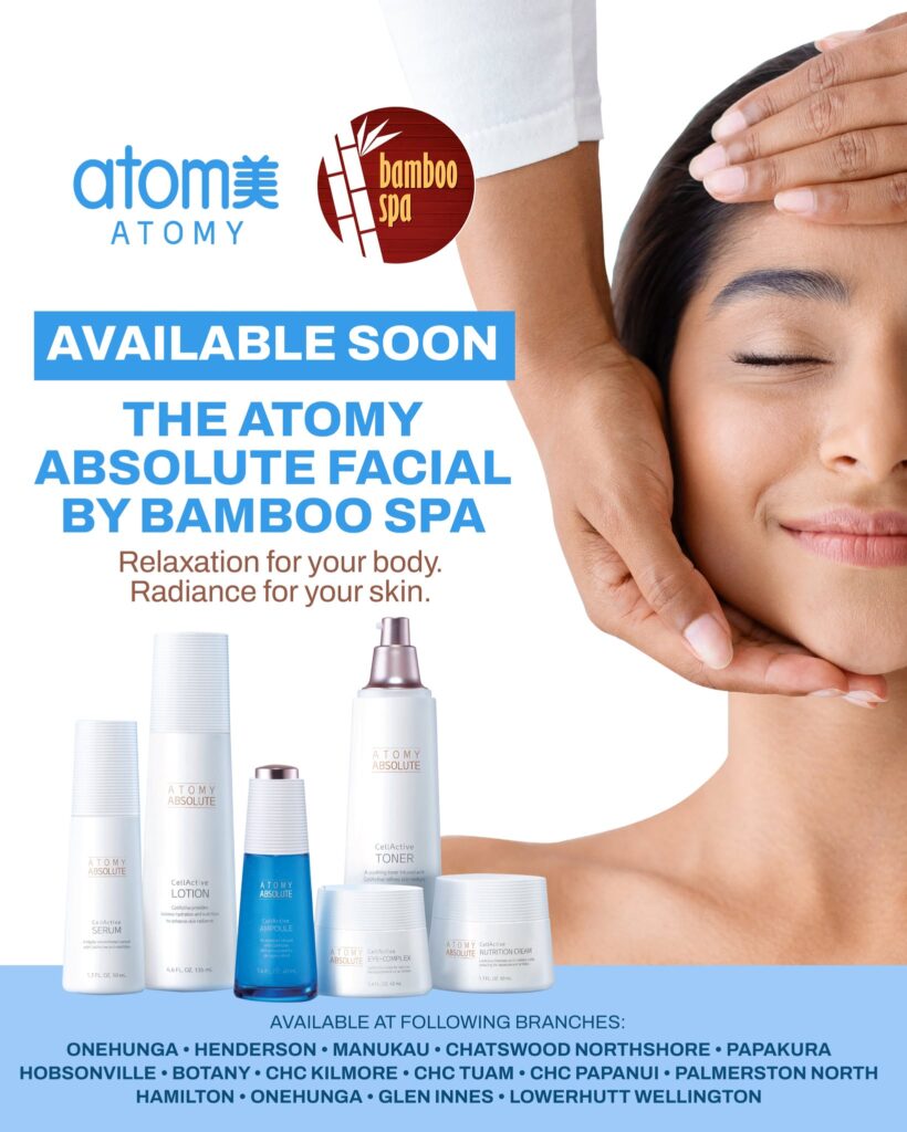 This luxurious facial combines the relaxing touch that Bamboo Spa is known for with the award-winning Atomy Absolute Skincare line from Korea. It’s more than a massage – it’s hydration, rejuvenation, and glow in one session.